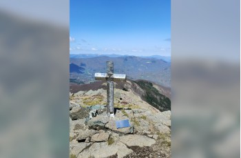 Encore quelques rochers à franchir pour continuer le long d’une zone herbeuse qui précède l’arrivée au sommet nord du Mont Aiona; guidés par les balisages visibles sur certaines roches, mais sans un tracé précis, on poursuit jusqu’au sommet principal du Mont Aiona, à 1701 m, reconnaissable à la présence de la croix et de la rose des vents. Par temps clair (souvent il y a du vent et du brouillard), il est impossible de ne pas s’arrêter pour profiter du panorama enthousiasmant.