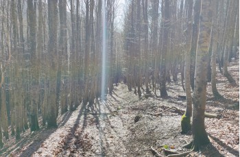 pour monter, à travers la hêtraie, avec quelques tronçons raides, jusqu’aux pentes du Mont Cantomoro, puis sortir du bois et, en traversant une clairière, atteindre les Prati di Montenero, une vaste zone herbeuse et marécageuse parsemée de pierres, particulièrement suggestive au printemps avec la bruyère en fleur.