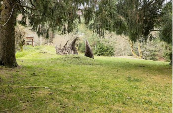 Camminando tra originali installazioni artistiche con un ponticello si arriva al piccolo lago incorniciato da una pineta.