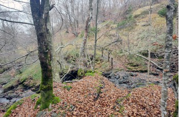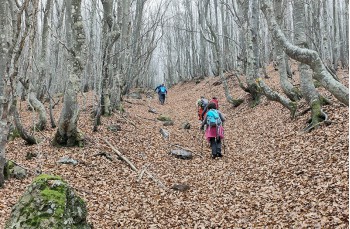 Il percorso è ora tutto in salita nel bosco con alternanza di tratti più o meno ripidi e un passaggio in una bella faggetta puntellata da roccioni coperti da muschio.